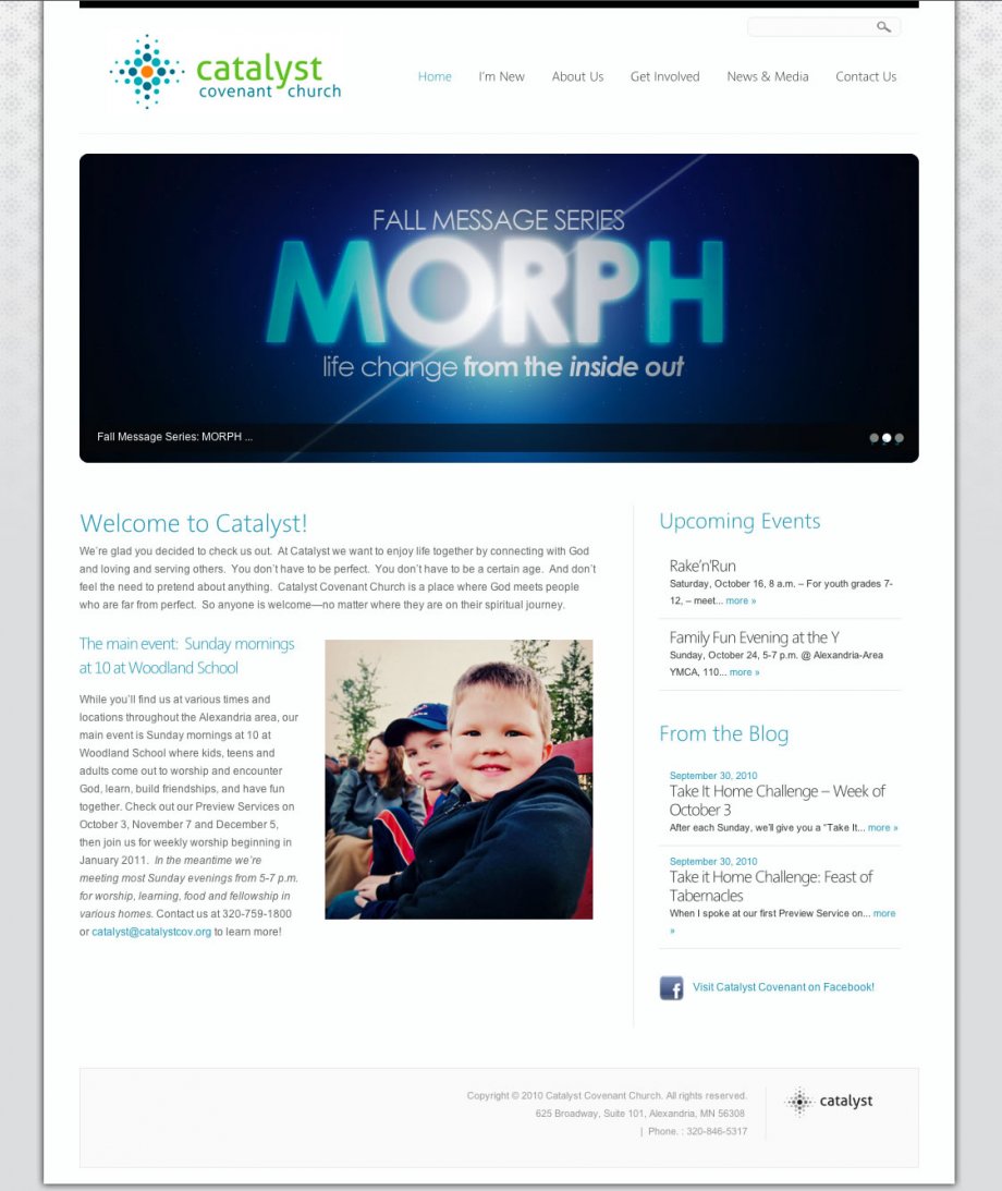 Working closely with Malley Design, Mipaca Interactive installed and customized WordPress with a theme for Catalyst Covenant Church. A few features of note are: