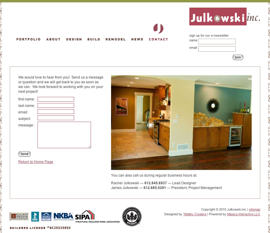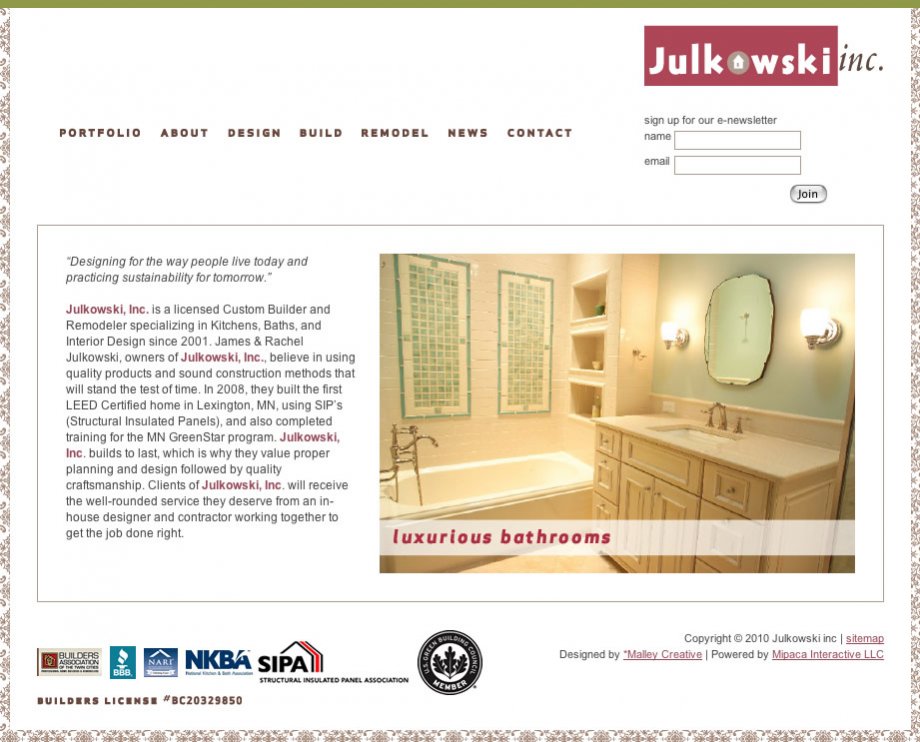 Julkowski, Inc. is a licensed Custom Builder and Remodeler specializing in Kitchens, Baths, and Interior Design since 2001. James & Rachel Julkowski, owners of Julkowski, Inc., believe in using quality products and sound construction methods that will stand the test of time.