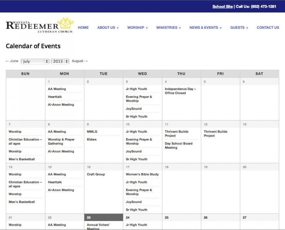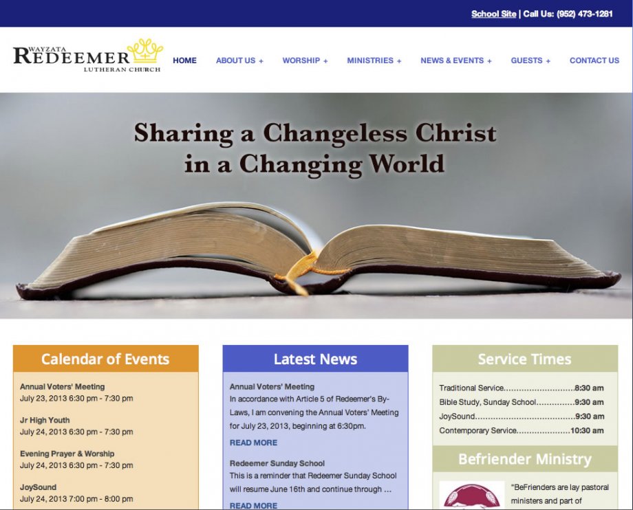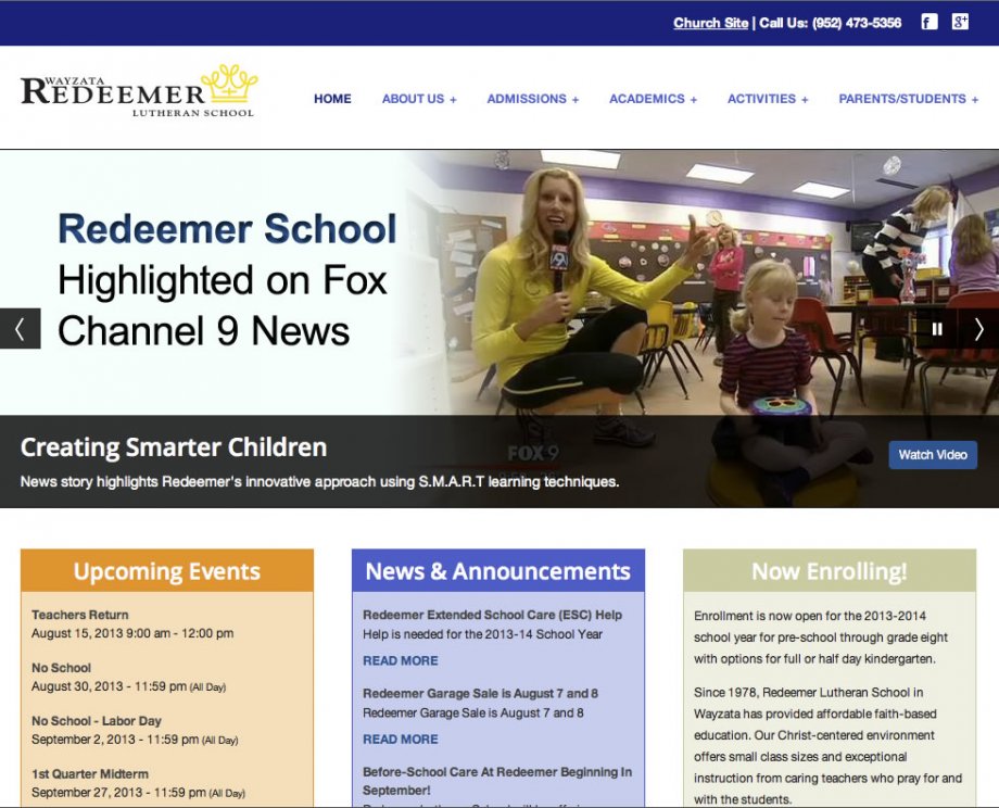 Mipaca Interactive worked with Redeemer Lutheran's board to create a WordPress multi-site for the church and school. A WordPress mulit-site allows the site content managers to login once to manage the content that appears on both the church and the school site. The layout was based on a theme and modified to fit the look that Redeemer wanted.