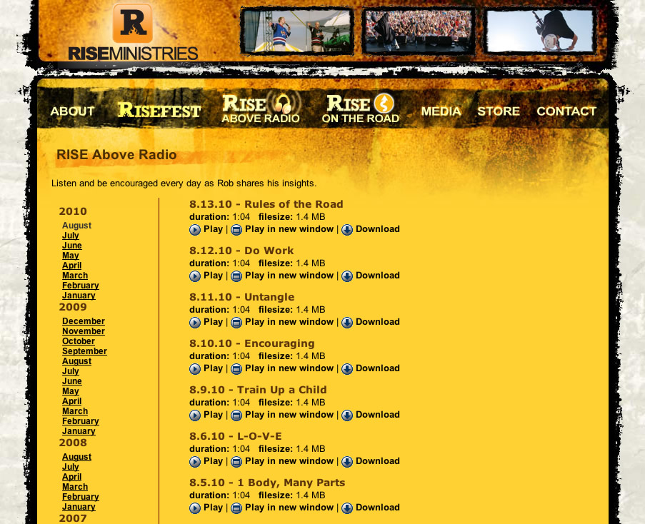 - Consolidation of the RiseFest and Rise Ministries sites into one site.